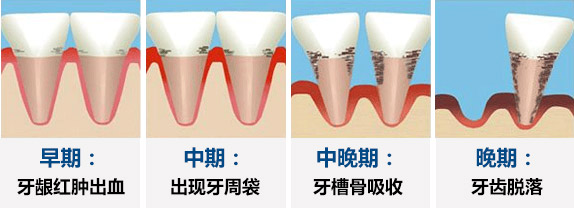 牙周病会出现口臭和牙槽骨萎缩,导致牙齿松动和脱落。更为严重的是,牙周病的局部感染还可作为病灶,引起全身其他部位的一些重要脏器患病,所以建议早期治疗,控制病情的发展。