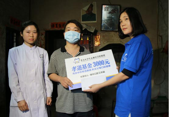 穗华口腔医院为弘扬中华民族传统文化,让孝道美德深入人心;同时将尊老风尚传播到整个社会,引起广泛关注和共鸣,共创和谐社会;也同时给吴正新母子生活上一点帮助,特送去孝道基金3000元,希望吴正新勇敢面对生活,接下来的路很长很长。