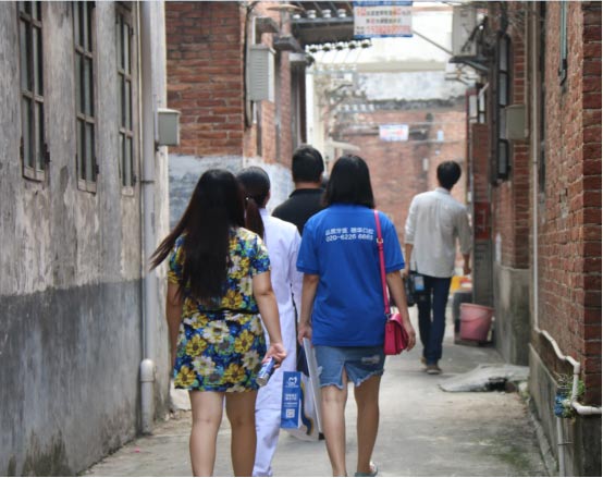 南方电视台今日一线及穗华口腔医院工作人员正赶往赖锡芬家里。