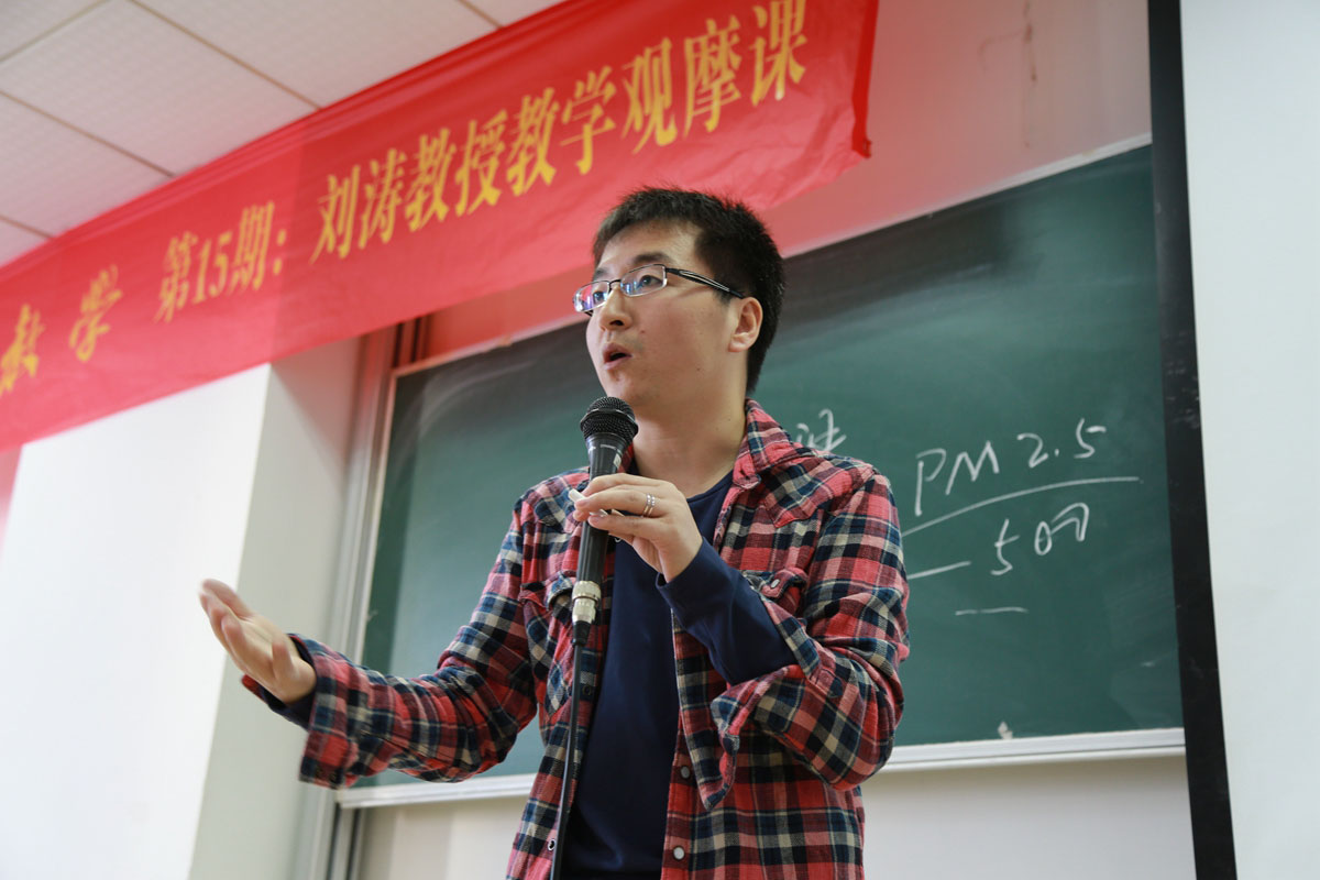 新闻与传播学院学生介绍,在“80后男神教师”刘涛的课堂上,“站票”现象是正常的。除了选课的学生,刘涛的课堂还常常有校内外教师、学生慕名旁听,座位总是不够。