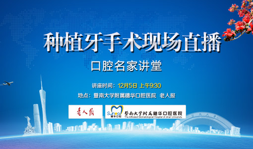 为感恩回馈广大忠实读者,广州日报携手穗华口腔医院将于本周六举办种植牙手术视频直播活动。现场缺牙老人可获得口腔健康公益义诊券1张(义诊券包含免费专家特诊、免费全景牙片以及个性化种植牙方案设计),名额有限,每天限号30名,预约电话020-6226 6666,有需要的市民可报名参与。