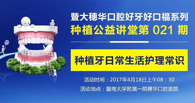 为了提高患者对种植牙日常护理常识的意识,4月18日上午8:30穗华口腔医院举行第21期种植公益讲堂种植牙日常生活护理常识讲座,由穗华口腔医院种植科张春雷专家担任讲座主讲专家。