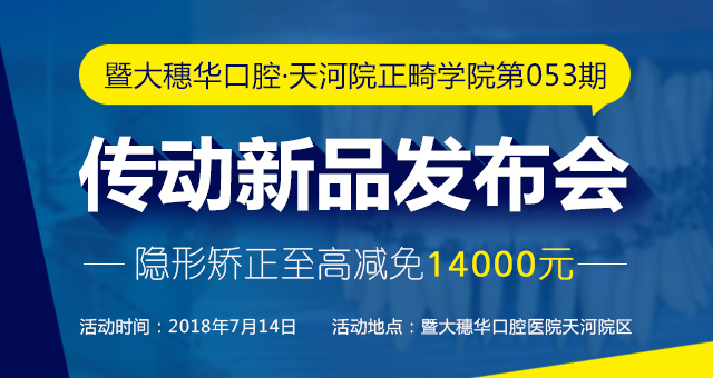 为了让更多的市民能够体验更加先进的牙齿矫治技术,穗华口腔医院天河院区将于7月14日举办金牌笑容.传承 穗华口腔医院•正畸学院第53期之传动新品发布。届时,在场市民可以亲眼见证由北京大学口腔医学院林久祥教授自主研发的传动直丝弓矫治技术,更全面的了解传动直丝弓矫治技术的特点,并且可和资深正畸专家面对面交流,解决您对牙齿矫正的疑惑。