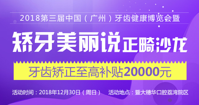 为了让广大市民能够以更好的状态面对2019,穗华口腔荔湾院区于12月30日举办2018第三届中国(广州)牙齿健康博览会暨《矫牙美丽说》正畸沙龙第036期。届时,资深正畸大咖将出席本次正畸沙龙,给在场市民讲解前沿的正畸知识。在活动现场,在场市民也可与正畸大咖面对面交流,领取精美好礼。