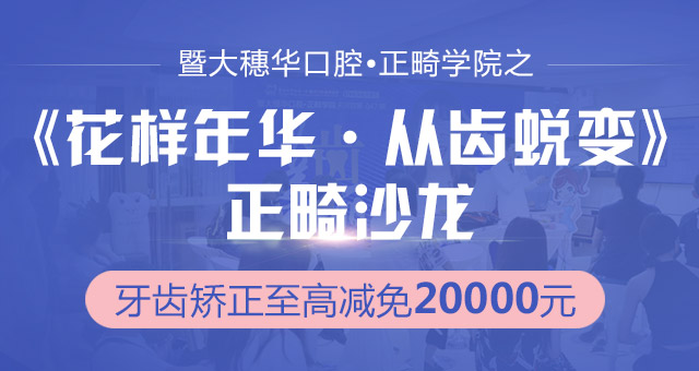 为了让更多的牙不齐市民能够实现心目中的男神女神梦,穗华口腔医院特举办穗华口腔•正畸学院之《花样年华•从齿蜕变》正畸沙龙。届时,穗华口腔医院资深正畸专家将出席本次活动,给在场市民讲述如何“正牙”,摒弃歪牙。在活动现场,在场市民还有机会与正畸专家一对一交流,面对面沟通,领取精美礼品。