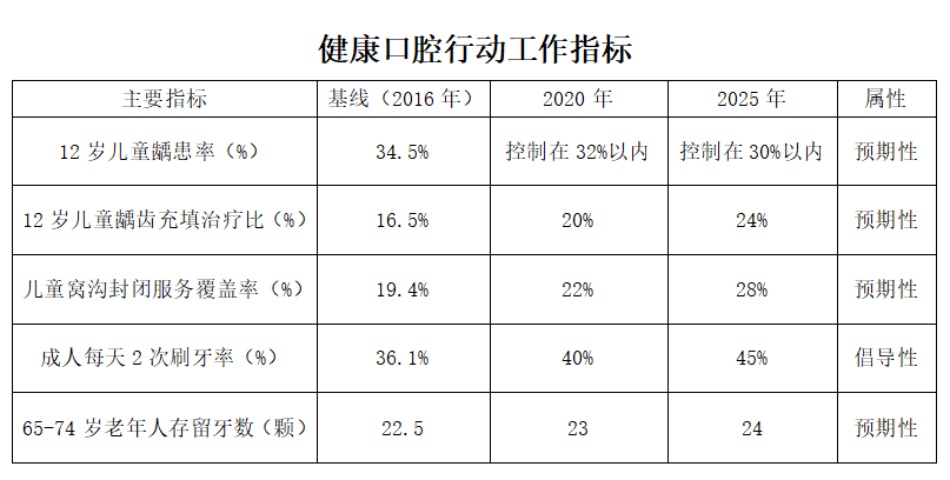 《健康口腔行动方案》明确指出: