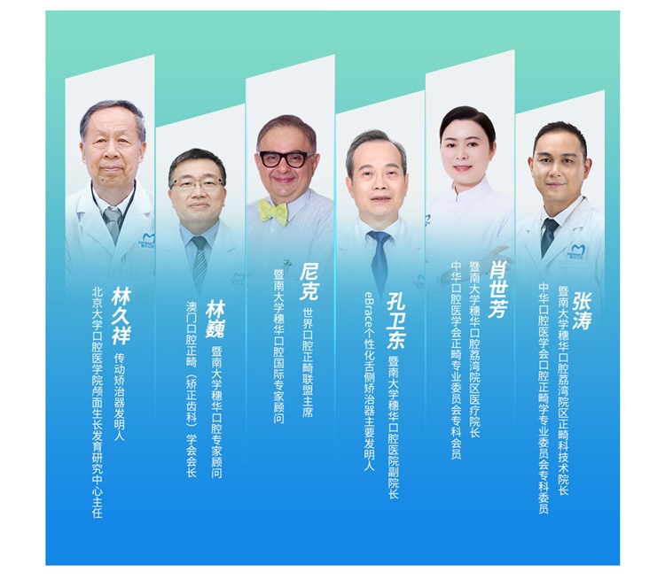 由国内正畸泰斗林久祥教授、双一流名校暨南大学口腔医学院知名教授领衔、穗华口腔医院九大院区资深正畸医师组成专业诊疗团队结合大量科研、专利技术、超10w+临床病例,为每一位患者提供精准且高效的个性化正畸诊疗方案。